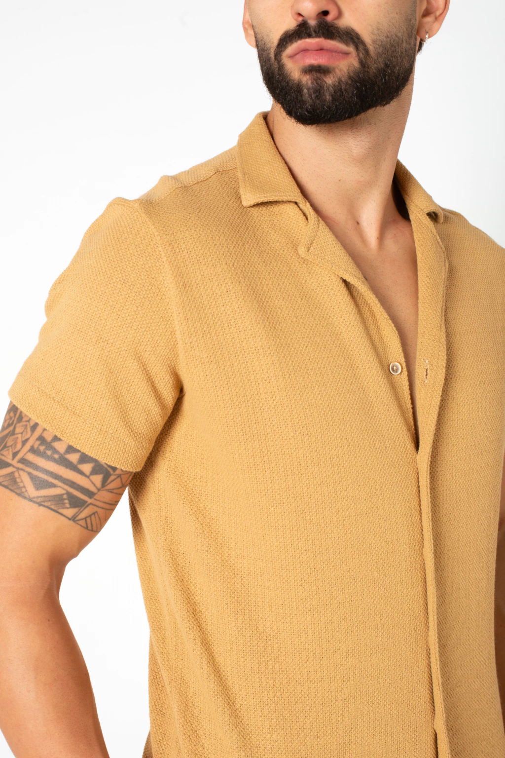 A escolha perfeita para quem busca estilo com sofisticação. Esta camisa de manga curta apresenta uma textura elegante que eleva o visual, mesmo nas produções mais casuais. Com modelagem confortável e caimento impecável, é ideal para compor looks versáteis do dia a dia ao encontro mais refinado. A cor bege traz neutralidade e modernidade, fácil de combinar com jeans, alfaiataria ou bermudas.